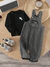 男童休闲舒适百搭可爱熊标志图案背带裤