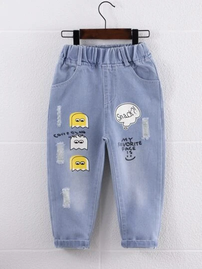 口袋卡通小男童牛仔褲 - 中等水洗藍 - 查看 1