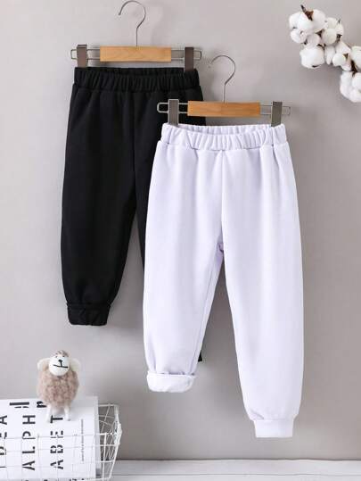 男童保暖内衬运动裤 - 黑與白 - 查看 2