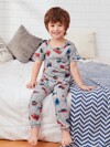 6 件装男童恐龙、挖掘机、飞机印花长袖上衣和裤子睡衣套装,卡通全身印花轻便家居服,适合春秋季