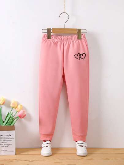 小女童愛心圖案衛褲 - 淺粉色 - 查看 1