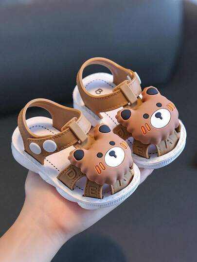 幼儿学步鞋,0-3岁可爱卡通防滑防水软底透气包趾凉鞋,适合婴幼儿 - 咖啡棕 - 查看 3