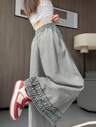 女士休闲可爱格子碎花边长裤,适合春夏秋季