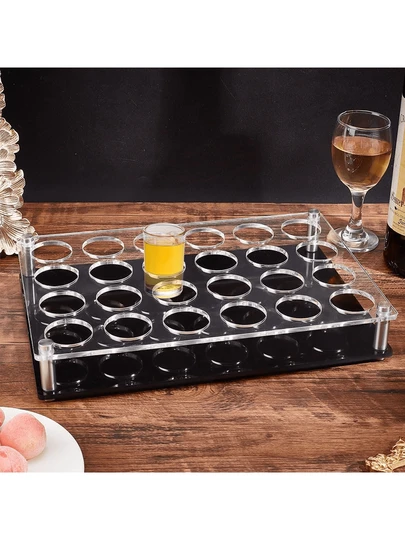 透明亚克力酒杯托盘,亚克力酒杯托盘,酒杯服务托盘,玻璃储物盒,酒杯展示架,适用于派对、酒吧、俱乐部 - 彩色 - 查看 1