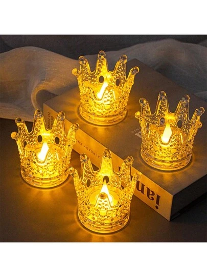 透明蠟燭皇冠電子蠟燭led燈發光皇冠飾品回校用品禮品 - 白色 - 查看 1