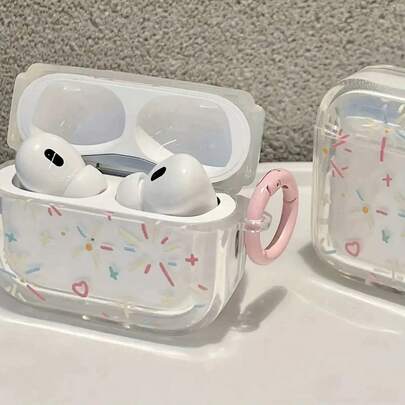 透明耳机保护套,油画烟花图案,透明清爽,防震防摔,兼容苹果蓝牙耳机保护套 - 無色 - 查看 1