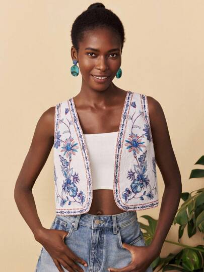 Travachic 花卉印花轻薄棉质外套、休闲度假、文艺复兴博览会、秋冬牛仔上衣