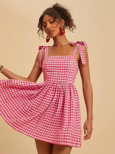 Travachic 女士印花方领无袖系带束腰夏季连衣裙,女士度假装,女士海滩度假装,女士夏季服装,女士夏季连衣裙,女士连衣裙,夏季连衣裙