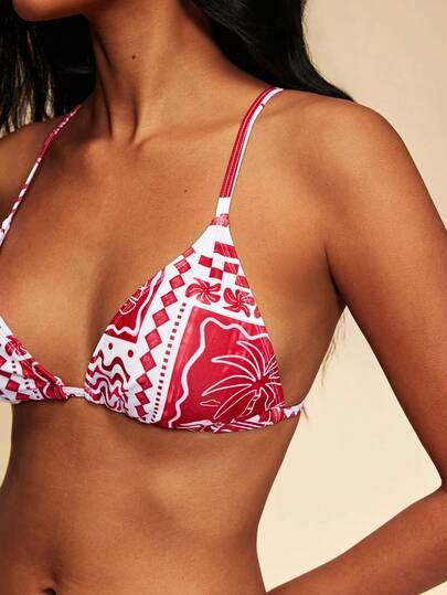 Travachic 女士几何印花细肩带性感比基尼泳装套装,夏季海滩