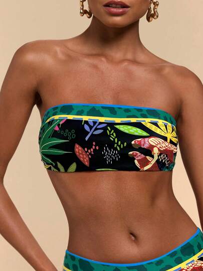 Travachic 女士夏季海滩植物印花性感抹胸比基尼上衣 - 彩色 - 查看 1