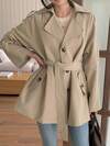 Livesso 女士休闲户外纯色收腰长袖风衣,春夏秋季女装外套