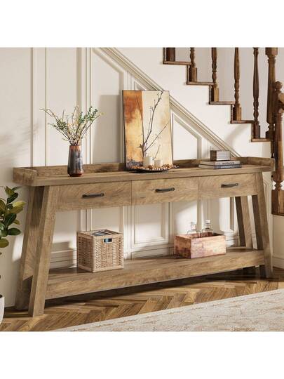 Tribesigns 70.9-Inch Extra Long Sofa Console Table With 3 Drawers, 2-Tier Farmhouse Entryway Table With Raised Baffle And Storage Shelves For Living Room, Couch, Hallway, Foyer, Entrance, Rustic Brown