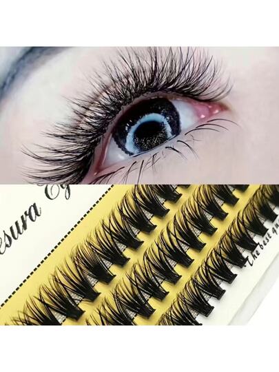 三排 60 簇 40d 8mm 合成假睫毛条状睫毛,睫毛,睫毛,假睫毛 - 黑色 - 查看 4