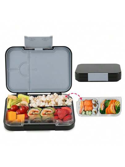 Tritan 材质带闪光便当盒 - 大号午餐盒 - 4-6 个隔层,防漏,便携手柄,适合返校使用 - 黑色 - 查看 1