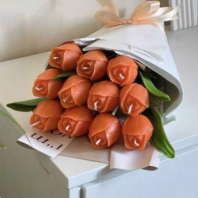 郁金香蜡烛模具,用于制作香薰蜡烛,逼真的郁金香造型,带有栩栩如生的茎干,适合家居装饰、礼品赠送和户外使用。