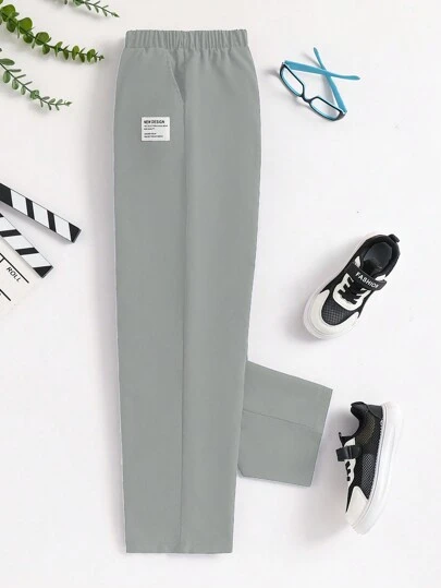 SHEIN Tween Boy 休闲字母印花松紧腰裤 - 淺灰色 - 查看 1