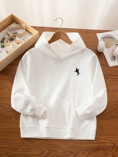 男童经典休闲百搭棉质刺绣卫衣,可单穿或叠穿 - 白色 - 查看 1