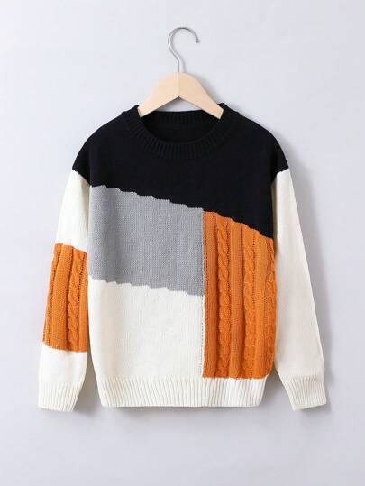 男大童撞色麻花編織套頭毛衣 - 彩色 - 查看 6