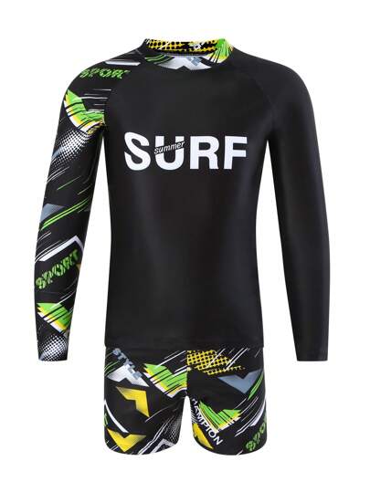 男大童字母圖案高領沙灘泳裝 - 彩色 - 查看 1