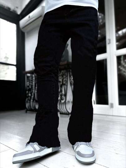 青少年男童休闲弹力腰带口袋牛仔裤,四季皆宜 - 黑色 - 查看 1