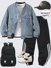 复古水洗宽松休闲字母刺绣棒球牛仔夹克,适合青少年男孩,秋冬季时尚百搭。