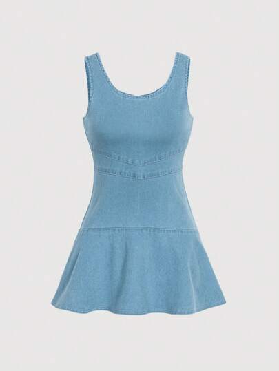 少女時尚休閒無袖牛仔裙 - 淺色水洗藍 - 查看 1