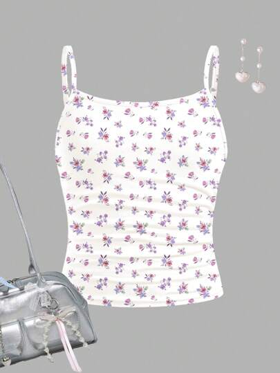 青少年女孩合身休闲运动基本款吊带背心 - 白色 - 查看 1