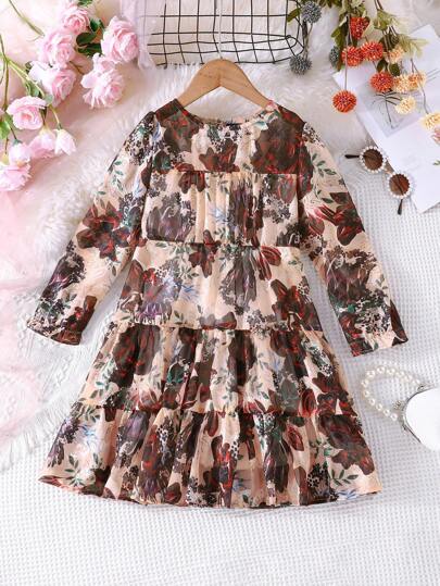 女大童印花荷葉邊娃娃裙 - 彩色 - 查看 1
