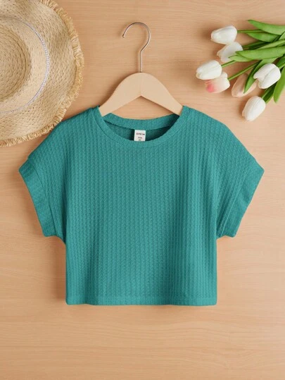 SHEIN Tween女孩鬆身剪裁休閒短袖圓領條紋t恤 - 薄荷綠 - 查看 5