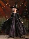 ALISA&LEO 少女亮片V领灯笼袖层叠A字薄纱正式连衣裙