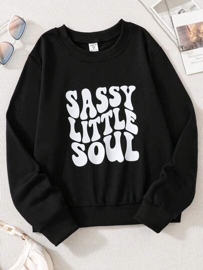 SHEIN Tween女孩的字母印花運動衫