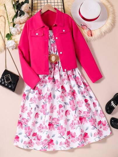女童長袖外套和碎花洋裝 2 件/套