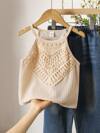 女童度假海边花卉钩针装饰修身露脐背心,夏季