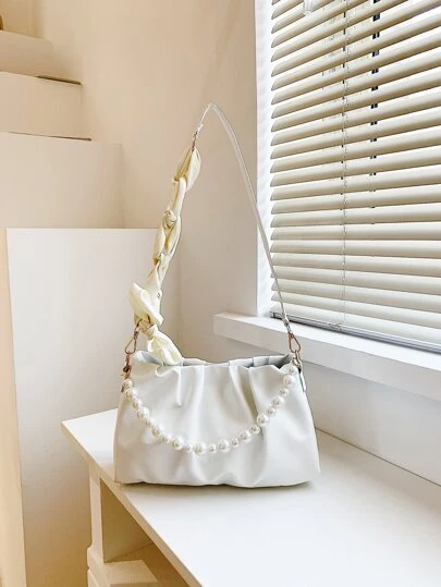 絲巾裝飾人造珍珠細節雲朵包 - 白色 - 查看 8