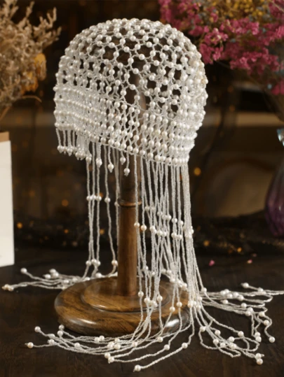 1 件女士复古优雅手工镂空头饰,珍珠流苏帽,适合拍照、新娘、舞台表演 - 其他帽子 - 查看 1
