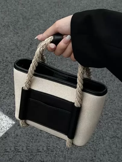 雙色撞色滾邊帆布手提包 - 彩色 - 查看 1