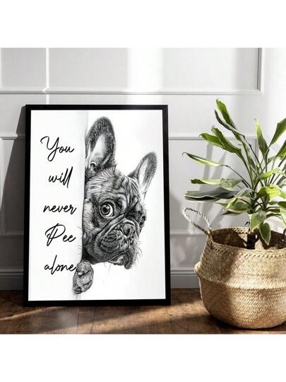 1 件/套有趣的黑白法国斗牛犬海报印刷品 - 幽默浴室装饰 - “你永远不会独自小便”墙壁艺术装饰,适用于家庭和办公室,是送给爱狗人士的完美礼物,墙壁装饰礼物,不含相框 - 黑與白 - 查看 1