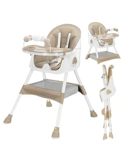 UBRAVOO Foldable Baby High Chair 6 Months Plus, With Large Antislip Pad & ToyRack, Easy To Clean Feeding - 卡其色 - 查看 1
