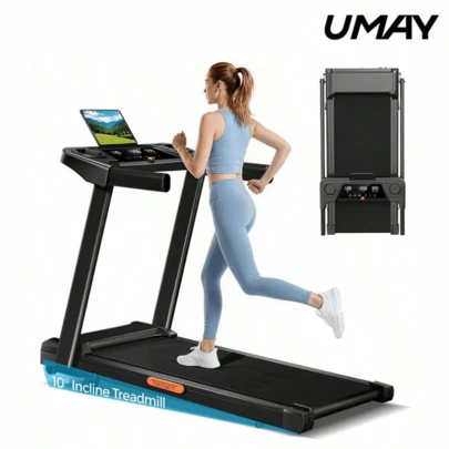 UMAY Fitness Folding Treadmill With Incline, Electric Treadmill For Home Exercise, 3.0 Horsepower Quiet Brushless Treadmill, 8.7 MPH, 300 Lbs