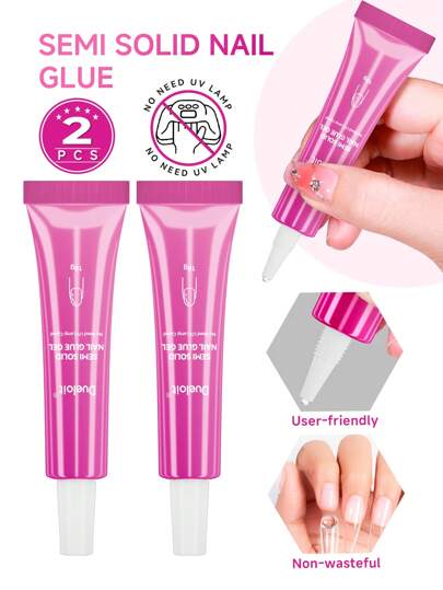 2pcs/1pc Newly Upgraded Quick Drying 10g Semi Solid Nail Glue For Press On Nails Tips No Need For UV Lamp Long Lasting Fake Acrylic Nails Kit Glue Gel - 無色 - 查看 2