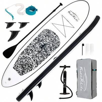 Ultra-Light Inflatable Stand Up Paddle Board (SUP) Complete Kit With Adjustable Paddle, High-Pressure Pump, Travel Backpack And Coiled Leash For All Skill Levels Beginners To Advanced - 10英尺迷彩 - 黑色 - 查看 1