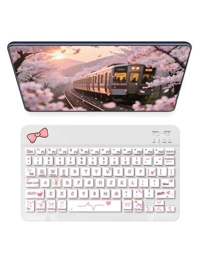 超薄可充电蓝牙键盘,便携式紧凑型无线键盘(150mAh),兼容三星Galaxy Tab、安卓、Windows平板电脑、智能手机、iOS iPad,2026年圣诞/新年礼物(蝴蝶结) - 白色 - 查看 1
