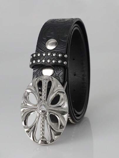 1 件经典女士压花腰带,西部牛仔腰带扣波西米亚风格腰带金属扣个性化时尚,男女通用街头时尚 Y2K 腰带,适合搭配牛仔裤,适合男士女士,是送给家人和朋友秋季、秋季、万圣节的理想礼物 - 黑色白K扣 - 查看 2