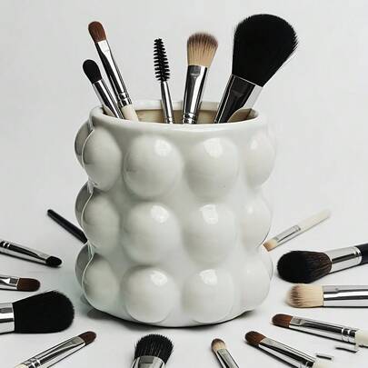 造型独特的陶瓷化妆刷架,优雅多功能桌面收纳盒。适用于收纳化妆刷、珠宝、钢笔及小物件——采用耐用陶瓷材质,表面光滑,适合梳妆台、办公室等场所使用。