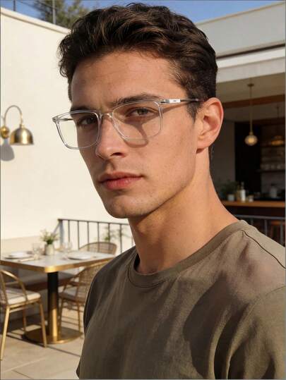 男女通用矩形塑料眼镜框,轻便眼镜,适用于电脑、游戏、电视、手机,时尚透明眼镜 - 無色 - 查看 1