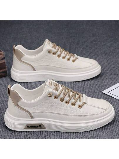 通用男士低帮纯色休闲滑板鞋 - 可调节扣、防滑、舒适、透气、轻便、PU 鞋面、PVC 鞋底,非常适合四季户外散步、远足、慢跑 - 卡其色 - 查看 1