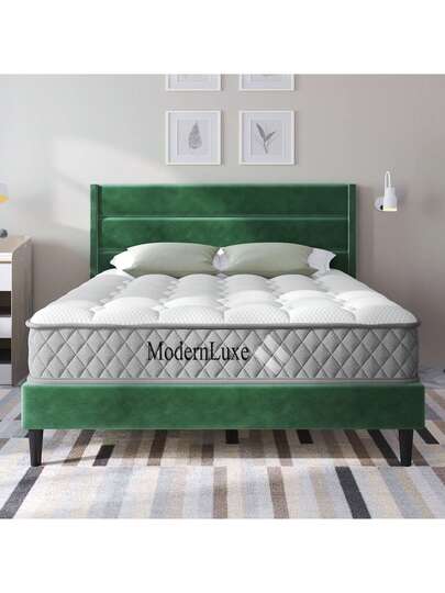 Upholstered Bed 140 X 200 Cm, Bed Frame With Slatted Base And Headboard, Upholstered Double Bed, Dark Green Velvet Fabric Cover, Timeless Modern Design, Youth Bed (With Mattress) - 綠色 - 查看 11