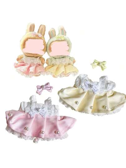 (仅衣服) 甜心、珍珠、蝴蝶结装饰公主裙套装适用于 娃娃第一代和第二代,17CM LLABUBS、Labobo、LBB 小雕像服装 - 彩色 - 查看 3