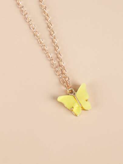 蝴蝶吊墜項鍊 - 黃色 - 查看 1