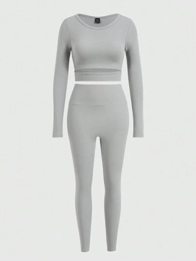 VARSITIE 運動夏季瑜珈基礎款緊身褲 - 淺灰色 - 查看 1